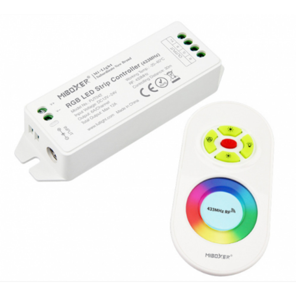 A MiBoxer (Mi-Light)Távirányító - RGB (Színes) professzionális megoldást nyújt LED világítási rendszerek vezérléséhez. Ergonomikus kialakítású távirányító, amely kompatibilis a Mi-Light / MiBoxer 2.4GHz termékcsalád vezérlőivel és fényforrásaival.