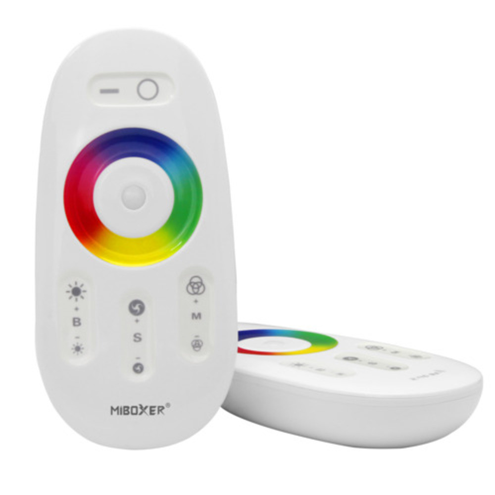 A MiBoxer (Mi-Light)Távirányító - RGBW (Színes + Fehér) professzionális megoldást nyújt LED világítási rendszerek vezérléséhez. Ergonomikus kialakítású távirányító, amely kompatibilis a Mi-Light / MiBoxer 2.4GHz termékcsalád vezérlőivel és fényforrásaival.