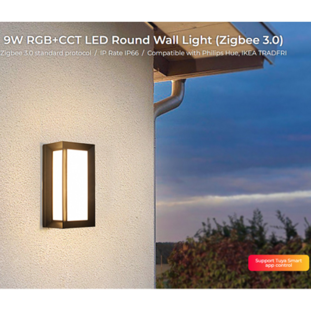 MiBoxer (Mi-Light) WA5-09S-ZL 9W , kültéri fali lámpa, IP66 , SMART , ZIGBEE , Philips Hue és IKEA TRADFI kompatibilis 24VDC , dimmelhető