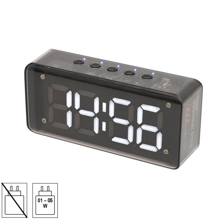 A futurisztikus, átlátszó burkolat különleges megjelenést kölcsönöz az órának, amely tökéletesen illeszkedik bármilyen környezetbe. Az 3D fehér LED kijelző kiválóan olvasható, és a fényerő könnyedén változtatható, hogy az Ön igényeihez igazodjon. A kijelző egyszerre képes két különböző ébresztési időpontot kezelni, így ideális több személy számára is.