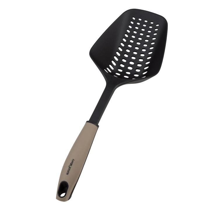 A Misty tésztakiszedő kanalat (hossza 35 cm) kiváló minőségű nylon anyagból gyártja a NAVA, amely élelmiszerrel érintkezve is biztonságos, és akár 200°C-os hőmérsékletnek is ellenáll. Ergonomikus, csúszásmentes, puha tapintású fogantyúja kényelmes és biztonságos használatot tesz lehetővé, míg a fogantyú végén lévő praktikus lyuk lehetővé teszi, hogy könnyedén felakaszthassa.