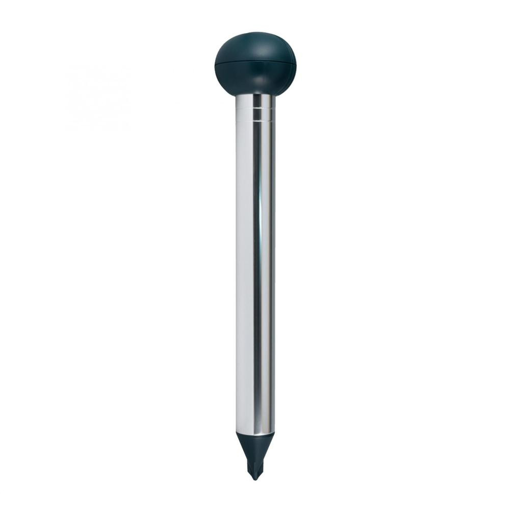 A Silverline IN 25131 Vakondriasztó karó nagyon egyszerű megoldás, hogy a kertjét messziről elkerüljék a vakondok. Alacsony frekvenciájú hangokat kibocsájtva riasztja el a földalatti rágcsálókat talajtípustól függően akár 1250 m2 hatótávolságban. nTápellátásáról 4 db 1,5 V (D) elem gondoskodik, melyet nem tartalmaz a csomagolás. nA vakondriasztó karó 38 cm nagyságú.
